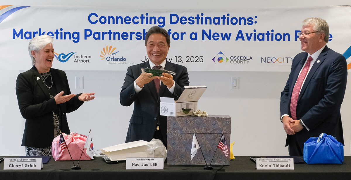 “With our exciting partnership with Orlando International Airport and Osceola County in Florida, we will jointly embark on comprehensive efforts to establish the first-ever direct flight route from Asia to Orlando, thereby improving passenger convenience and promoting vibrant business and travel exchanges between South Korea and the United States,” said Lee Hag-jae, President & CEO of Incheon International Airport.